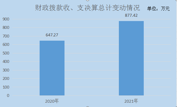 2021年财政拨款收、支总计877.42万元(含年初结转)。与2020年相比,财政拨款收、支总计各增加230.15万元,增长35.56%。主要变动原因是人数增加,基本支出、日常事务公用支出及项目支出收支增加。