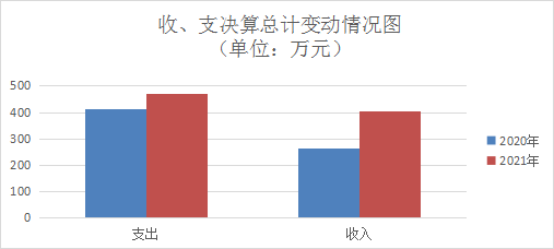 2021年度收入总计404.77万元、支出总计470.30万元。与2020年相比,收入增加140.47万元、支出增加56.28万元,分别增长53%、14%。