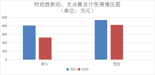 2021年财政拨款收入总计404.77万元、支出470.30。与2020年相比,财政拨款收入增加140.47万元、支出增加56.28万元,分别增长53%、14%。