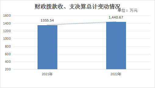 2022年度收、支总计1,440.67万元。与2021年相比,收、支各总计增加85.13万元,增长6.3%。主要变动原因是人员经费增加,工资调标等增加。