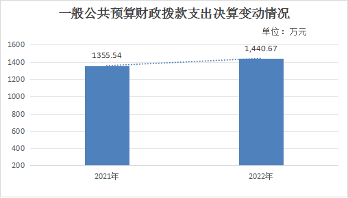 2022年一般公共预算财政拨款支出1,440.67万元,占本年支出合计的100%。与2021年相比,一般公共预算财政拨款支出增加85.13万元,增长。主要变动原因是人员经费增加,工资调标等增加。