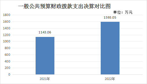 2022年一般公共预算财政拨款支出1593.05万元,占本年支出合计的100%。与2021年相比,一般公共预算财政拨款支出增加449.99万元,增长39.37%。主要变动原因是新进人员增多、公用经费增加及项目经费等增加。