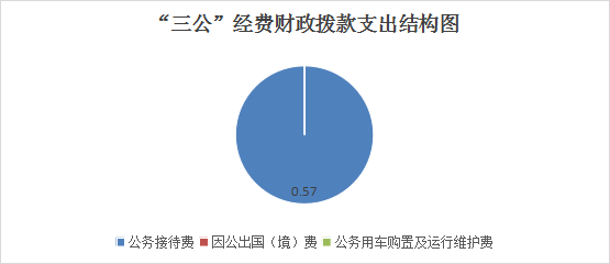 2022年“三公”经费财政拨款支出决算中,因公出国(境)费支出决算0万元,占0%;公务用车购置及运行维护费支出决算0万元,占0%;公务接待费支出决算0.57万元,占100%。具体情况如下: