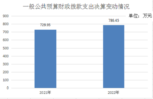 2022年一般公共预算财政拨款支出786.45万元,占本年支出合计的100.00%。与2021年相比,一般公共预算财政拨款支出增加56.5万元,增长7.74%。主要变动原因是我单位编制内实有人数增加,导致人员基本支出及日常事务公用支出增加。