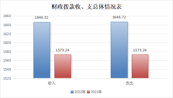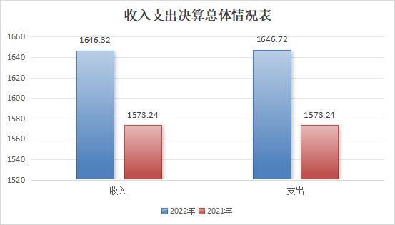 2022年财政拨款总收入1646.32万元。与2021年相比,财政拨款总收入增加73.08万元,增长4.65%。财政拨款总支出1646.72万元。与2021年相比,财政拨款总支出增加73.48万元,增长4.67%。主要变动原因是新进人员工资调资和公用经费调标及项目增加。