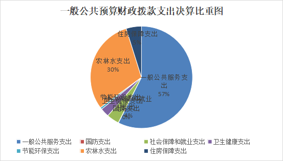 2022年一般公共预算财政拨款支出1646.72万元,主要用于以下方面:一般公共服务支出946.03万元,占57.46%;国防支出0.88万元,占0.01%;社会保障和就业支出64.87万元,占3.95%;卫生健康支出46.11万元,占2.81%;节能环保支出10.17万元,占0.62%;农林水支出498.93万元, 占30.3%;住房保障支出79.74万元,占4.85%。