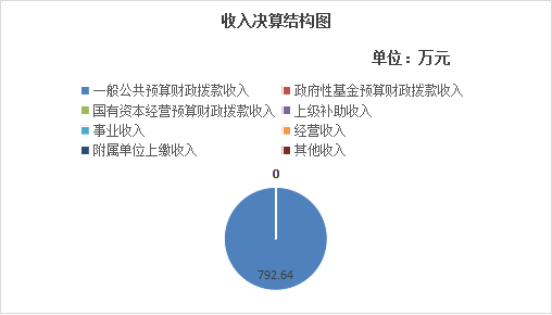 2022年本年收入合计792.64万元,其中:一般公共预算财政拨款收入792.64万元,占100%;政府性基金预算财政拨款收入0万元,占0%;国有资本经营预算财政拨款收入0万元,占0%;上级补助收入0万元,占0%;事业收入0万元,占0%;经营收入0万元,占0%;附属单位上缴收入0万元,占0%;其他收入0万元,占0%。