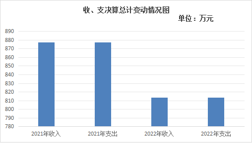2022年度收、支总计813.46万元。与2021年相比,收、支总计各减少63.96万元,下降7.3%。主要变动原因是基本支出和项目支出减少。