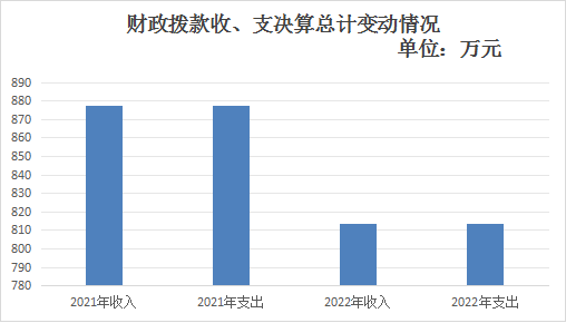 2022年财政拨款收、支总计813.46万元。与2021年相比,财政拨款收、支总计各减少63.96万元,下降7.3%。主要变动原因是基本支出和项目支出减少。