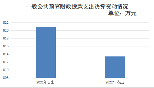 2022年一般公共预算财政拨款支出813.46万元,占本年支出合计的100%。与2021年相比,一般公共预算财政拨款支出减少7.43万元,下降0.9%。主要变动原因是办公费支出,会议费支出、公务接待费、公务用车运行维护费等支出减少。