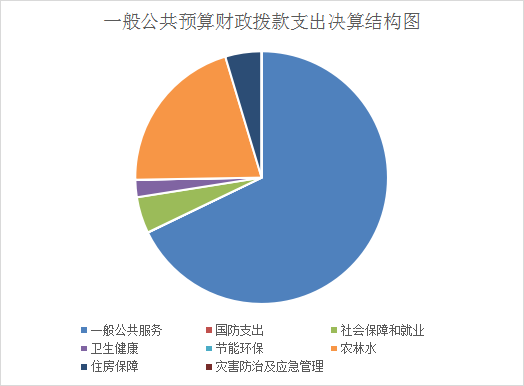 2022年一般公共预算财政拨款支出1639.37万元,主要用于以下方面:一般公共服务(类)支出1076.68万元,占65.6%;国防支出(类)0.53万元,占0.032%;社会保障和就业(类)支出91.88万元,占5.6%;卫生健康(类)支出35.32万元,占2.1%;农林水(类)支出327.37万元,占20%;交通运输(类)支出0.46万元,占0.028%;住房保障(类)支出73.7万元,占4.5%;其他支出(类)33.42万元,占2%(注:数据来源于财决01-1表,仅罗列本部门涉及的全部功能分类科目,至类级。)