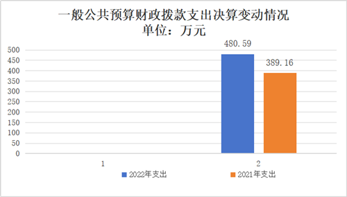 2022年一般公共预算财政拨款支出480.59万元,占本年支出合计的100%。与2021年相比,一般公共预算财政拨款支出增加86.59万元,增长21.98%。主要变动原因是单位合并人员经费的增加