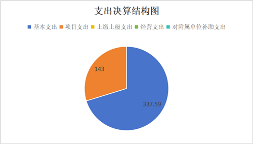 2022年本年支出合计480.59万元,其中:基本支出337.59万元,占70.24%;项目支出143.00万元,占29.76%;上缴上级支出0万元;经营支出0万元;对附属单位补助支出0万元。