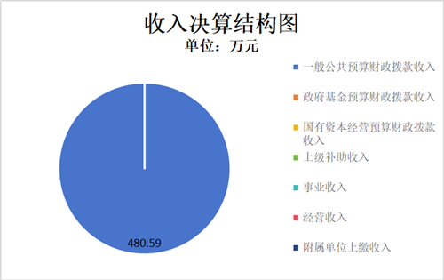 2022年本年收入合计480.59万元,其中:一般公共预算财政拨款收入480.59万元,占100%;政府性基金预算财政拨款收入0万元;国有资本经营预算财政拨款收入0万元;上级补助收入0万元;事业收入0万元;经营收入0万元;附属单位上缴收入0万元;其他收入0万元。