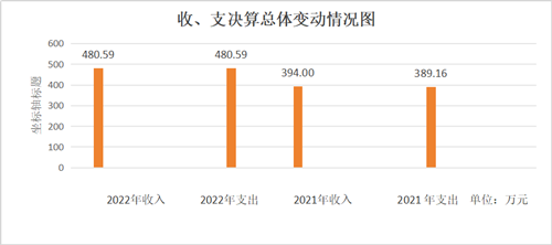 2022年度收、支总计480.59万元。与2021年相比收支各增加86.59万元,增长21.98%。主要变动原因是单位合并人员经费的增加。