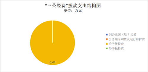 2022年“三公”经费财政拨款支出决算中,因本单位多年都没有因公出国,所以年初没有预算因公出国(境)经费,年终也没有支出发生;公务用车购置及运行维护费支出决算没有支出,因为单位没有车;公务接待费支出决算0.44万元,占100%。具体情况如下: