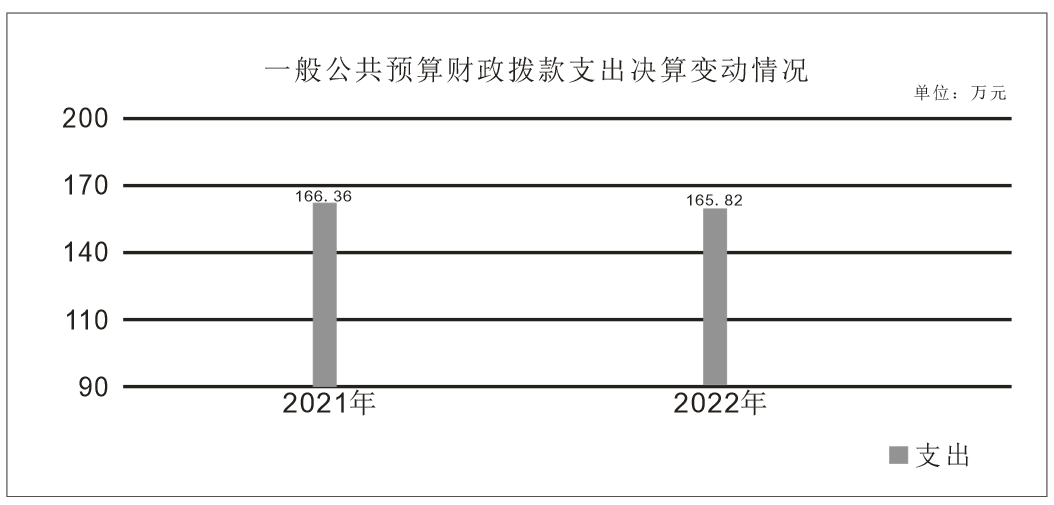 2022年一般公共预算财政拨款支出165.82万元,占本年支出合计的100%。与2021年支出166.36万元相比,一般公共预算财政拨款支出减少0.54万元,下降0.32%。主要变动原因是项目增加、人员减少。