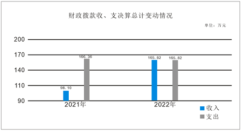 2022年财政拨款收入165.82万元、支出165.82万元。与2021年收入98.10万元、支出166.36万元相比,收增加67.72万元、支出减少0.54万元。主要变动原因是项目增加、人员减少。