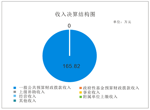 2022年本年收入合计165.82万元,其中:一般公共预算财政拨款收入165.82万元,占100%;政府性基金预算财政拨款收入0万元,占0%;国有资本经营预算财政拨款收入0万元,占0%;上级补助收入0万元,占0%;事业收入0万元,占0%;经营收入0万元,占0%;附属单位上缴收入00万元,占0%;其他收入0万元,占0%。