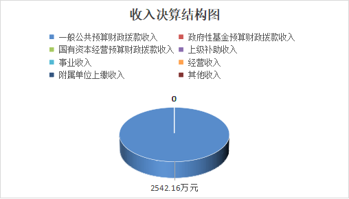 2023年度本年收入合计2542.16万元,其中:一般公共预算财政拨款收入2542.16万元,占100%;政府性基金预算财政拨款收入0万元,占0%;国有资本经营预算财政拨款收入0万元,占0%;上级补助收入0万元,占0%;事业收入0万元,占0%;经营收入0万元,占0%;附属单位上缴收入0万元,占0%;其他收入0万元,占0%。
