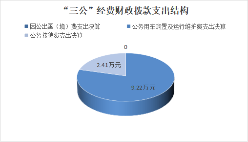 2023年度“三公”经费财政拨款支出决算中,因公出国(境)费支出决算0万元,占0%;公务用车购置及运行维护费支出决算9.22万元,占79.3%;公务接待费支出决算2.41万元,占20.7%。具体情况如下: