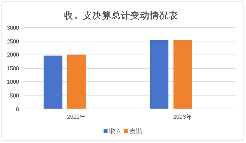 2023年度收、支总计均为2542.16万元。与2022年度相比,收、支总计各增加529.61万元,增长26.3%。主要变动原因是招考录用在编人员增加导致的辖区人员类收入增加。
