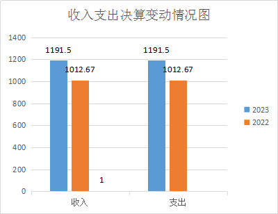 2023年度收、支总计均为1191.50万元。与2022年度1012.67万元相比,收、支总计各增加178.83万元,增加17.66%。主要因部门项目经费预算增加,人员工资增加等。