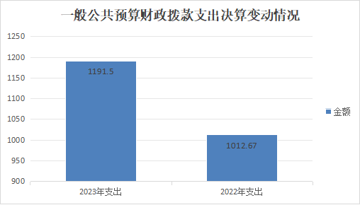 2023年度一般公共预算财政拨款支出1191.5万元,占本年支出合计的100%。与2022年度1012.67万元相比,收、支总计各增加178.83万元,增加17.66%。主要因部门项目经费预算增加,人员工资增加等。