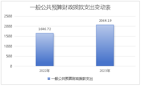2023年度一般公共预算财政拨款支出2064.19万元,占本年支出合计的99.99%。与2022年度相比,一般公共预算财政拨款支出增加417.47万元,增长25.35%。主要变动原因是人员调资和公用经费调标及项目支出增加。