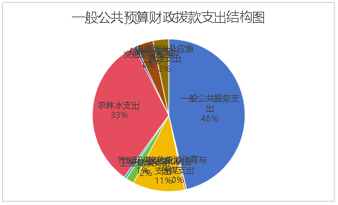 2023年度一般公共预算财政拨款支出2064.19万元,主要用于以下方面:一般公共服务支出953.89万元,占46.21%;国防支出1.6万元,占0.08%;文化旅游体育与传媒支出8.49万元,占0.41%;社会保障和就业支出226.58万元,占10.98%;卫生健康支出35.47万元,占1.72%;节能环保支出11.99万元,占0.58%;农林水支出672.55万元,占32.58%;交通运输支出10.18万元,占0.49%;住房保障支出75.43万元,占3.66%;灾害防治及应急管理支出68万元,占3.29%。