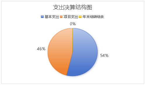 2023年度本年支出合计2064.24万元,其中:基本支出1112.94万元,占53.92%;项目支出951.25万元,占46.07%;年末结转结余0.05万元,占0.01%。