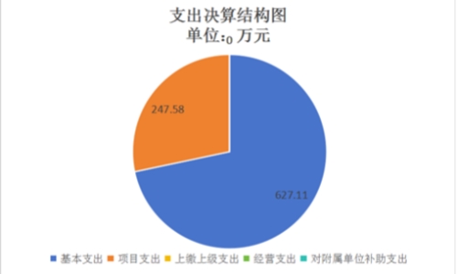 2023年度本年支出合计874.69万元,其中:基本支出627.11万元,占71.7%;项目支出247.58万元,占28.3%;上缴上级支出0万元,占0%;经营支出0万元,占0%;对附属单位补助支出0万元,占0%。