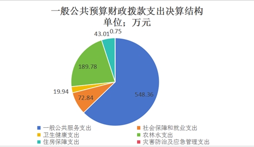2023年度一般公共预算财政拨款支出874.69万元,主要用于以下方面:一般公共服务支出548.36万元,占比62.7%;社会保障和就业支出72.84万元,占8.3%;农林水支出189.78万元,占21.7%;住房保障支出43.01万元,占4.9%;灾害防治及应急管理支出0.75万元,占0.1%;卫生健康支出19.94万元,占2.3%。