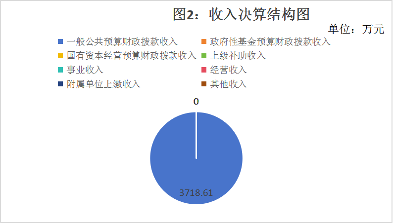 2023年度本年收入合计3718.61万元,其中:一般公共预算财政拨款收入3718.61万元,占100%;政府性基金预算财政拨款收入0万元,占0%;国有资本经营预算财政拨款收入0万元,占0%;上级补助收入0万元,占0%;事业收入0万元,占0%;经营收入0万元,占0%;附属单位上缴收入0万元,占0%;其他收入0万元,占0%。