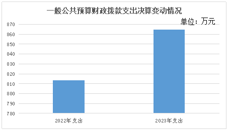 2023年度一般公共预算财政拨款支出864.86万元,占本年支出合计的100%。与2022年度相比,一般公共预算财政拨款支出增加51.4万元,增长6.3%。主要变动原因是人员调整,基本支出和项目支出增加。