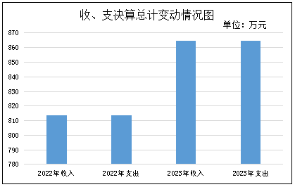 2023年度收、支总计均为864.86万元。与2022年度相比,收、支总计各增加51.4万元,增长6.3%。主要变动原因是人员调整、基本支出和项目支出增加。