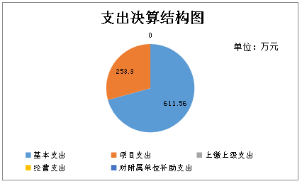 2023年度本年支出合计864.86万元,其中:基本支出611.56万元,占70.7%;项目支出253.30万元,占29.3%;上缴上级支出0万元,占0%;经营支出0万元,占0%;对附属单位补助支出0万元,占0%。