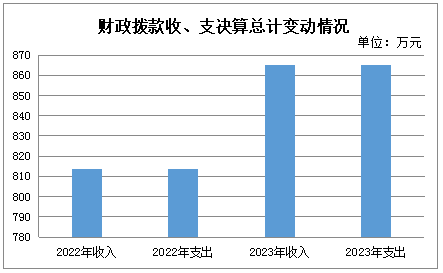 2023年度财政拨款收、支总计均为864.86万元。与2022年度相比,财政拨款收、支总计各增加51.4万元,增长6.3%。主要变动原因是人员调整、基本支出和项目支出增加。