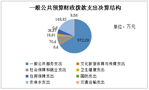 2023年度一般公共预算财政拨款支出864.86万元,主要用于以下方面:一般公共服务支出572.29万元,占66.2%;文化旅游体育与传媒支出6.4万元,占0.7%;社会保障和就业支出70.40万元,占8.1%;卫生健康支出18.91万元,占2.2%;住房保障支出38.87万元,占4.5%;国防支出0.6万元,占0.1%;农林水支出148.83万元,占17.2%;交通运输支出8.56万元,占1%。