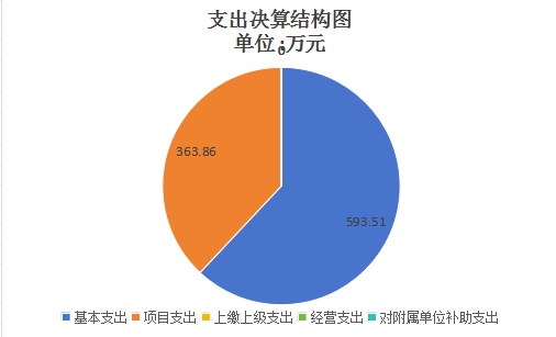 2023年度本年支出合计957.37万元,其中:基本支出593.51万元,占62%;项目支出363.86万元,占38%;上缴上级支出0万元,占0%;经营支出0万元,占0%;对附属单位补助支出0万元,占0%。