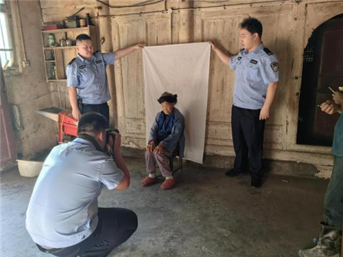 经调查了解,乐安镇松柏村袁某母亲强某年过九旬,身份证不慎遗失。鉴于该老人年高岁大、行动不便、身居高山等特殊情况,户籍民警决定携带相关身份证采集设备,亲自到老人家里采集照片、完善户籍信息,开展居民身份证办理的前期必要工作。