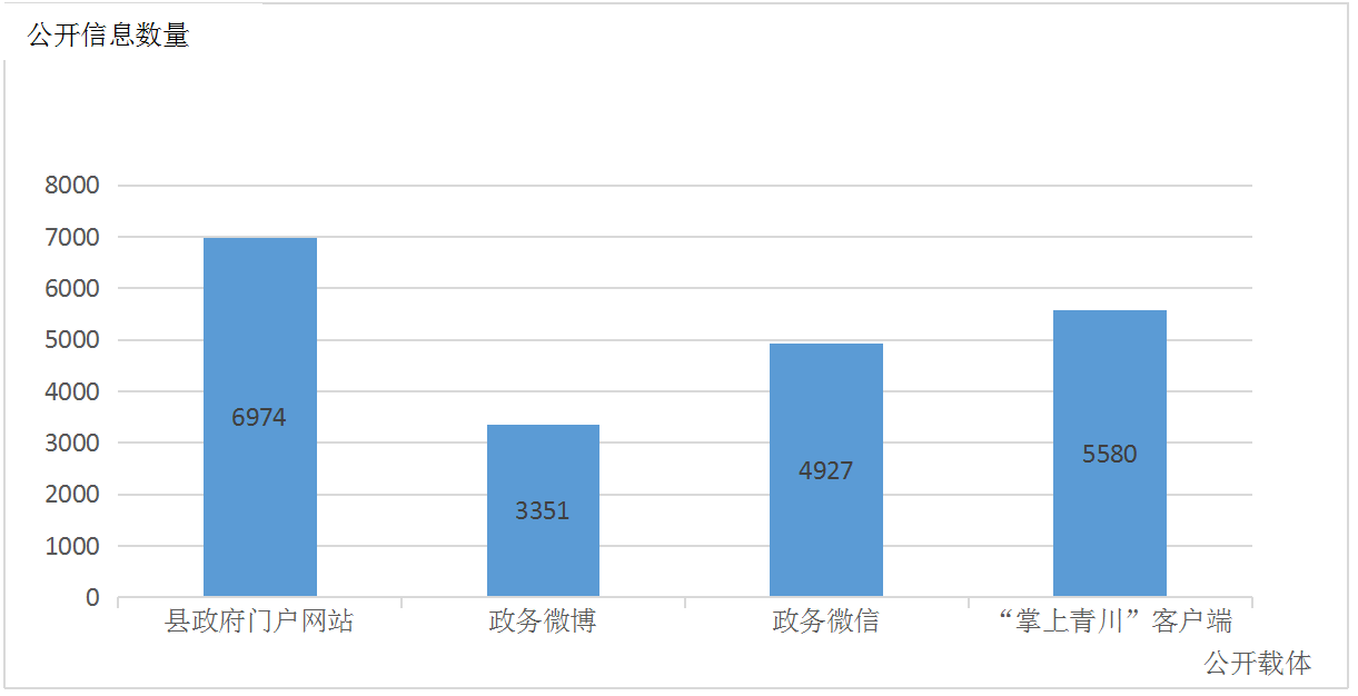 1.强化主动公开。2020年,青川县政府门户网站公开信息6974条;政务微博公开信息3351条;政务微信公众号公开信息4927条;“掌上青川”客户端公开信息5580条。全年公开新冠肺炎疫情防控、“三大攻坚战”、优化营商环境、行政执法、重大行政决策预公开等5个方面政府信息2633条。